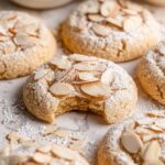 These Almond Cookies feature a delicate frangipane filling nestled inside buttery, soft cookies topped with sliced almonds and a dusting of powdered sugar. Perfectly baked to a light golden brown, they offer a delightful almond flavor and a tender texture, ideal for an elegant dessert or a special treat with tea or coffee.