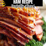 Take your masterpiece out of the oven and transfer it to a rimmed serving platter, placing it flat side out for easy slicing. I like to scatter some fresh kale leaves around the edges—it adds a nice color pop and makes the presentation festive, but it’s totally optional. Don’t forget to drizzle some of the pan juices over the slices or save them for making a delicious ham gravy later. Serve warm or at room temperature and prepare for your guests to rave.
