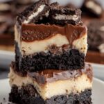 Delight in these decadent Brownie Cheesecake Bars featuring a rich brownie base loaded with Oreo pieces, topped with a smooth and creamy cheesecake layer, and finished with a luscious chocolate ganache and extra Oreo topping. Perfect for parties or a sweet treat any time.