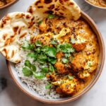 Butter Cauliflower is a flavorful, aromatic Indian-inspired dish featuring tender cauliflower florets cooked in a spiced tomato and cream sauce with garam masala, turmeric, and fresh ginger. Perfectly served over basmati rice and garnished with cilantro and Greek yogurt for a rich and comforting meal.