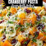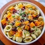 A delightful and hearty Butternut Squash Pasta Salad featuring roasted squash cubes sautéed with sage, combined with orecchiette pasta, dried cranberries, fresh parsley, and shredded parmesan. This salad is perfect served warm as a comforting main or side dish.