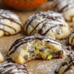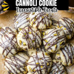 Delicious Cannoli Cookies inspired by the classic Italian dessert, featuring a soft, slightly sticky dough enriched with ricotta cheese, orange zest, and warm spices, studded with pistachios and mini chocolate chips, baked to golden perfection and optionally drizzled with melted chocolate or dusted with powdered sugar.