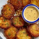 Bake at 400°F for 22–25 minutes until the cheese is golden and crispy and the potatoes are tender inside. I like to check at 20 minutes just to make sure the cheese isn’t browning too fast—every oven’s a bit different.