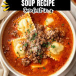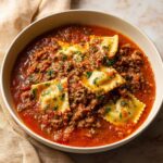 A comforting and hearty Ravioli Soup combining savory ground beef, flavorful herbs, crushed tomatoes, and tender cheese ravioli, perfect for a satisfying meal.
