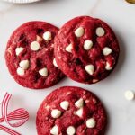 I store leftover cheesecake stuffed red velvet cookies in an airtight container at room temperature for up to 3 days. If it’s warm or humid, pop them in the fridge to keep the cheesecake filling fresh. Let them come to room temperature before enjoying for the best texture.