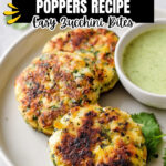 Delicious and healthy Chicken Zucchini Poppers made with ground chicken, fresh zucchini, and herbs, served with a creamy cilantro dipping sauce. Perfect as a snack or appetizer, these poppers are easy to prepare and cook quickly on the stovetop, offering a flavorful and moist bite without being greasy.