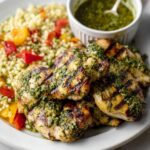 This Chimichurri Grilled Chicken with Couscous Salad is a vibrant and flavorful meal featuring juicy marinated chicken thighs grilled to perfection, paired with a refreshing couscous salad tossed in zesty chimichurri sauce, cherry tomatoes, feta cheese, and chives. A perfect dish for a satisfying lunch or dinner with a bright and fresh South American flair.