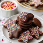Deliciously rich chocolate shortbread cookies with a perfect crisp texture, optionally dipped and decorated with melted baking chocolate and sprinkles. These cookies are easily made with simple ingredients like butter, powdered sugar, cocoa powder, and vanilla, then baked to golden perfection. Ideal for festive occasions or everyday treats.