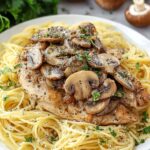 Turn the heat down to low, nestle the chicken breasts back into the sauce, and spoon some of those luscious mushrooms on top. Let everything warm through gently for a few minutes so the chicken reabsorbs those lovely flavors. Don’t skip this step—it really ties the dish together.