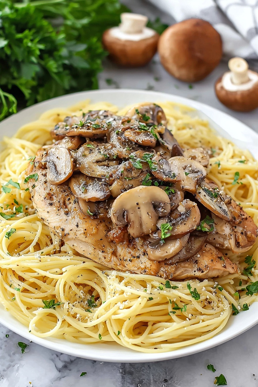 Classic Chicken Marsala is a savory Italian-American dish featuring tender chicken breasts sautéed to golden perfection and smothered in a rich mushroom and Marsala wine sauce. Served traditionally over spaghetti, it’s a quick yet elegant dinner option perfect for weeknights or special occasions.