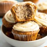 - Top Muffins: Dollop approximately 1 tablespoon of the cream cheese mixture onto each muffin and use a toothpick to gently swirl the cream cheese into the batter to create a marbled effect.