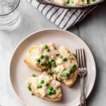 A comforting classic recipe featuring tender cooked chicken simmered in a creamy tarragon sauce with peas, served over fluffy homemade country biscuits. This creamed chicken over biscuits dish is perfect for a cozy lunch or dinner that’s both hearty and easy to prepare.