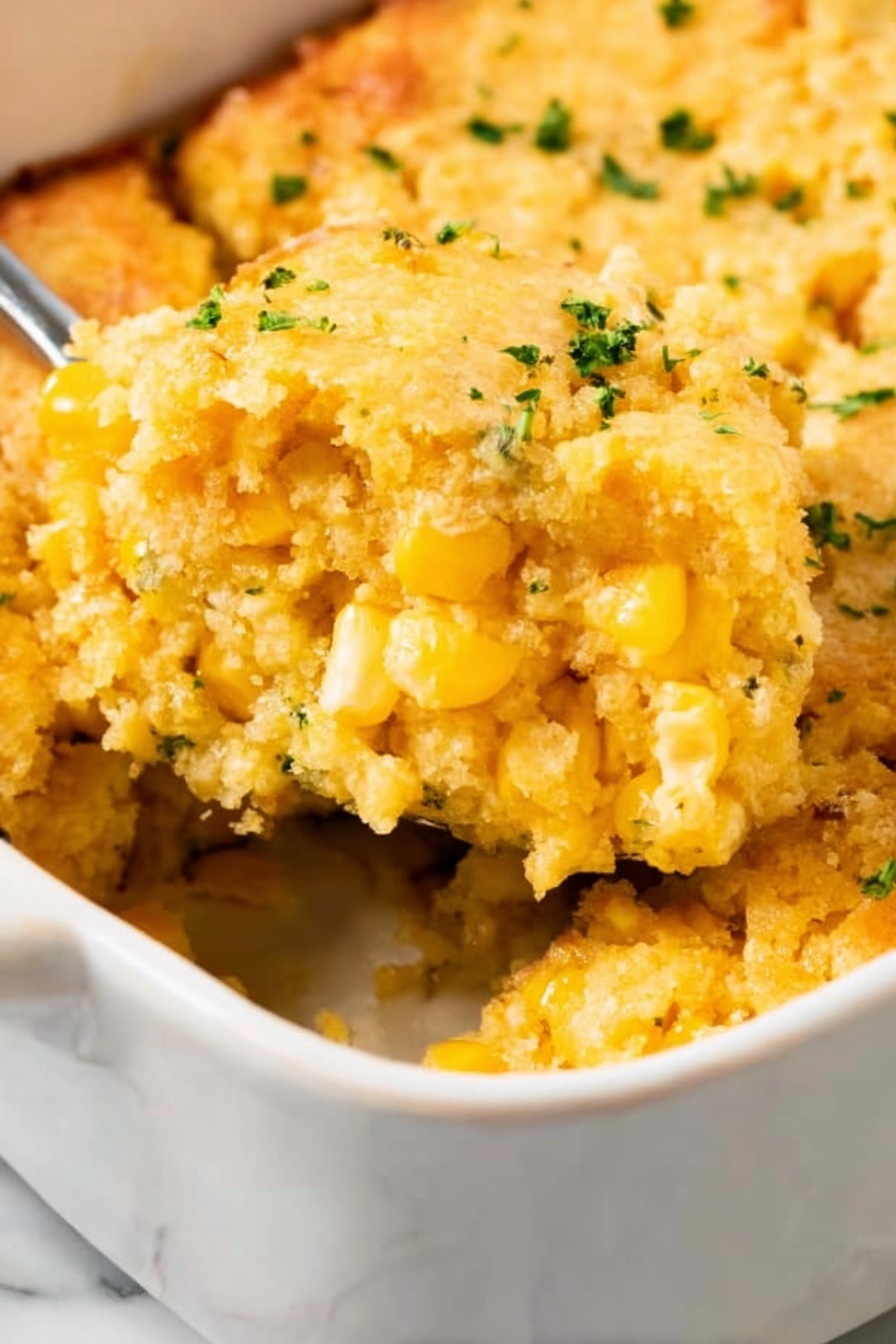 This Creamy Cornbread Casserole is a comforting and cheesy side dish that combines the sweetness of corn with a tender, golden cornbread base. Perfect for family dinners or holiday meals, it features a creamy texture with sharp cheddar cheese and a crisp top.
