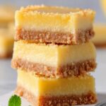 Creamy Lemon Squares feature a buttery graham cracker crust topped with a smooth, tangy lemon custard filling. These refreshing, sweet treats are perfect for dessert or a citrusy snack, with a rich, creamy texture balanced by bright lemon flavor.