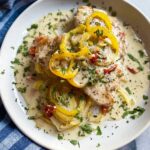 This Creamy Pepperoncini Chicken Skillet is a rich and flavorful one-pan meal featuring tender chicken strips cooked in a luscious sauce made with roasted red peppers, pepperoncini, garlic, and parmesan cheese. Perfectly balanced with a hint of spice and creaminess, this dish is ideal served over vegetables, pasta, or rice for a satisfying dinner.