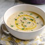 Julia Child’s Creamy Potato Leek Soup is a classic, comforting dish featuring tender Yukon gold potatoes and sautéed leeks blended into a smooth, velvety soup enriched with heavy cream and garnished with fresh thyme and a drizzle of olive oil.