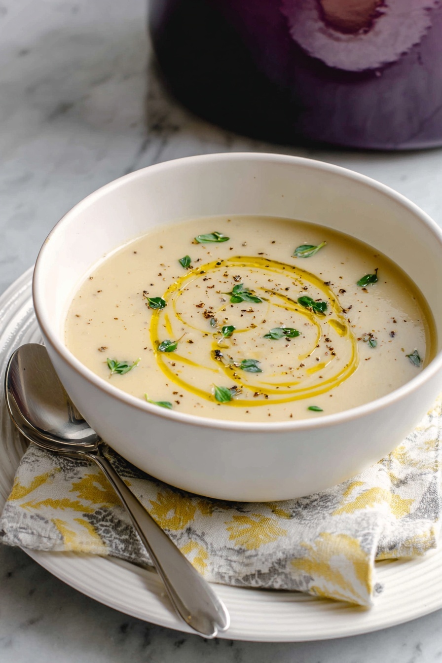 I always finish this soup with a few fresh thyme leaves — their herbaceous notes brighten up the richness. A drizzle of good-quality olive oil makes it glow and adds a lovely silky finish. If I’m feeling indulgent, a sprinkle of crispy bacon or a little grated sharp cheddar can’t be beat either.