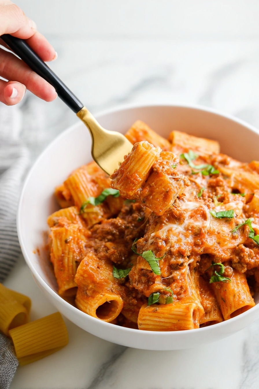 - Don’t overcook the pasta: Leaving rigatoni slightly under al dente helps it soak up the sauce without turning mushy the next day.