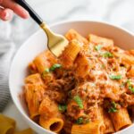 This Creamy Tomato Rigatoni Pasta is a comforting and flavorful dish featuring tender rigatoni coated in a rich, creamy tomato sauce infused with garlic and onion. It’s perfect for a satisfying weeknight dinner and topped with Parmesan cheese and fresh parsley for a burst of freshness.