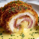 Crispy Creamy Chicken Cordon Bleu features tender chicken breasts stuffed with layers of Swiss cheese and ham, breaded to golden perfection, and served with a rich Dijon Parmesan sauce. This classic dish combines crispy texture and creamy flavors for a satisfying main course.
