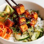After letting the tofu cool for 5 minutes post-bake, transfer it to a bowl and toss with half of the sauce so every piece gets that glorious glaze. Reserve the rest for drizzling. I love serving it over fluffy rice with fresh veggies like cucumber, carrot ribbons, and a sprinkle of sesame seeds. Sometimes I throw in avocado slices for creaminess—it’s honestly a dream meal.