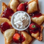These Deep-Fried Strawberry Cheesecake Stuffed Wonton Bites are irresistibly crispy on the outside and creamy on the inside. Filled with a smooth mixture of cream cheese, powdered sugar, vanilla, and strawberry jam, then fried to golden perfection. Perfect as a delightful appetizer or dessert served warm with whipped cream, extra strawberry jam, and fresh strawberries.