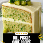 - Frost the Cake: Once the cakes are completely cool, spread the frosting evenly over one layer, then top with the second cake layer and frost the top and sides. Garnish with extra chopped pickles and dill sprigs if desired.