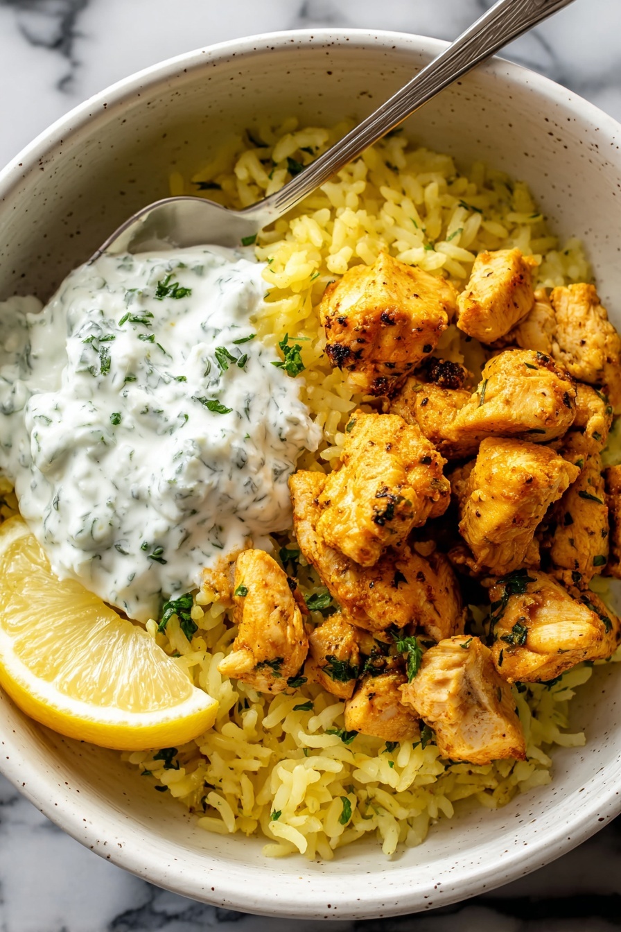 - Flavor Explosion: The creamy homemade tzatziki brings freshness that complements the chicken and rice perfectly.