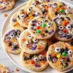 I love adding a few extra candy eyes and a handful of colorful M&Ms right on top while the cookies are still warm. It makes the cookies pop with personality and extra Halloween fun. You could even drizzle some white or dark chocolate if you want to get fancy or add a little edible glitter for sparkle!