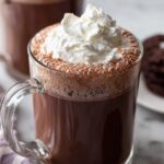 - Serve: Pour the hot chocolate into 4 small mugs and top each with a generous serving of homemade whipped cream for extra richness and flavor.