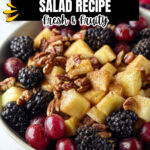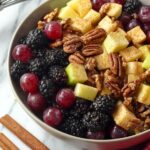 A vibrant and refreshing Fall Fruit Salad featuring a mix of sweet apples, juicy grapes, blackberries, and crunchy pecans, all tossed in a zesty orange, maple syrup, and cinnamon dressing. Perfect for a light snack or a side dish during autumn gatherings.