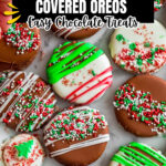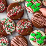 Festive Christmas Chocolate Covered Oreos are a delightful holiday treat featuring classic Oreos dipped in smooth milk and white chocolate, decorated with colorful sprinkles and optional food coloring for a vibrant seasonal touch. Perfect for gifting or party platters.