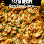 This French Onion Pasta recipe combines rich, caramelized onions with a creamy, flavorful sauce and tender short cut pasta. Featuring Gruyere and Parmesan cheeses, it’s an indulgent take on classic French onion soup flavors transformed into a comforting, cheesy pasta dish perfect for dinner.