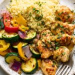 - Serve with lemon couscous made by boiling chicken broth with lemon, then adding couscous and letting it steam.