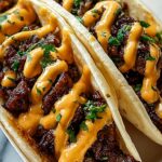 - Assemble the Tacos: Spoon the honey BBQ beef mixture onto each warm tortilla. Drizzle with the prepared taco sauce, sprinkle with 1 cup shredded cheddar cheese, and garnish with fresh cilantro if desired.