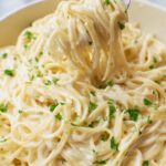 A creamy, flavorful one-pot Garlic Parmesan Pasta recipe that’s quick and easy to make with angel hair pasta, garlic, Parmesan cheese, and a rich sauce made from butter, chicken broth, and milk. Perfect for a comforting weeknight dinner.
