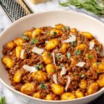 A hearty and comforting Gnocchi Bolognese recipe featuring tender gnocchi tossed in a rich, flavorful meat sauce made with lean ground beef, fresh herbs, and a touch of red wine, perfect for a satisfying dinner.