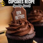 The ganache adds that lovely gooey surprise inside which makes these cupcakes stand out, but if you’re in a hurry, you can skip filling and still have delicious chocolate cupcakes topped with frosting and a tombstone. Just know the ganache really elevates the experience!