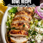 A fresh and flavorful Greek Chicken Bowl recipe featuring marinated chicken breasts cooked to juicy perfection, served over a bed of rice or quinoa with crisp vegetables, tangy tzatziki sauce, and a sprinkle of feta cheese for a wholesome Mediterranean-inspired meal.