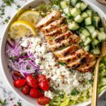 A fresh and flavorful Greek Chicken Bowl recipe featuring marinated chicken breasts cooked to juicy perfection, served over a bed of rice or quinoa with crisp vegetables, tangy tzatziki sauce, and a sprinkle of feta cheese for a wholesome Mediterranean-inspired meal.