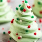 I love topping my green meringue trees with festive sprinkles — little silver balls, white snowflake shapes, or even edible glitter for a sparkly finish. It makes them feel like tiny holiday ornaments you can eat. Sometimes, I add a tiny dot of colored icing at the peak to mimic a star, which kids adore.