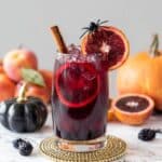 I don’t recommend freezing this Halloween Mocktail Sangria with Fruit and Spices Recipe because the texture of the fruit and bubbles won’t hold up well. It’s best enjoyed fresh or chilled.