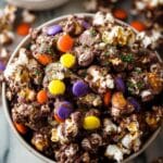 This Halloween Popcorn is a festive and delicious treat combining salted popcorn, semisweet chocolate, candy corn, peanut M&Ms, mini marshmallows, and colorful sprinkles. Perfect for parties or a spooky movie night, it’s easy to make using a double boiler method to melt chocolate and assemble a crunchy, sweet snack that hardens in the fridge.