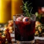 Top each glass with a few fresh blackberries, blueberries, and a lovely rosemary sprig. If you’re going all out for Halloween, toss on some edible spooky decor like sugar eyeballs or candy spiders. It’s such a fun way to impress your guests without extra fuss.
