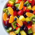 A refreshing and colorful Honey Lime Rainbow Fruit Salad featuring a vibrant mix of fresh strawberries, pineapple, blueberries, grapes, kiwis, mandarin oranges, and optional bananas, all tossed in a zesty honey lime dressing. Perfect for a healthy snack or a light dessert.
