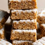 Deliciously soft and chewy Iced Oatmeal Cookie Bars with a sweet vanilla icing glaze. These bars combine old fashioned oats with warm spices and are topped with a smooth vanilla icing, making a perfect treat for any occasion.
