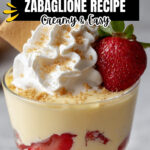 Zabaglione (Zabaione) is a classic Italian wine custard made with egg yolks, sugar, and Marsala wine, gently cooked over a bain-marie until light and frothy. This authentic creamy dessert is perfect served warm over fruits, panettone, or cookies, or transformed into a mousse with whipped cream.