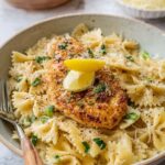 - Finish Chicken and Serve: Nestle the chicken breasts back into the skillet among the pasta. Cook for another 1 to 2 minutes until chicken is fully cooked through. Garnish with lemon wedges, fresh parsley or thyme, and an extra sprinkling of Parmesan cheese. Serve immediately.