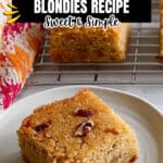 - Cut and Serve: Once cooled, cut the blondies into 16 bars and serve.