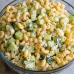 Personally, I don’t recommend freezing Meredith’s Creamy Macaroni Salad Recipe because the texture of the mayonnaise and sour cream can separate once thawed. It’s best eaten fresh or refrigerated for a few days.